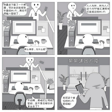 一些Wi-Fi密码共享类APP会在安装后自动上传所有已经连接过的Wi-Fi密码,其中很可能包含一些家庭、工作单位的密码。一旦攻击者使用这类工具,可以轻而易举地连接到家庭或单位的办公网络。