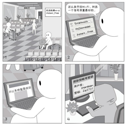 在餐厅、商场、火车站、机场等公众场所,通常都部署了免费的 Wi-Fi 热点,然而,攻击者可能会创建一个有迷惑性的Wi-Fi热点,一旦连接到这些恶意热点,可能会导致信息泄露、流量劫持等风险。