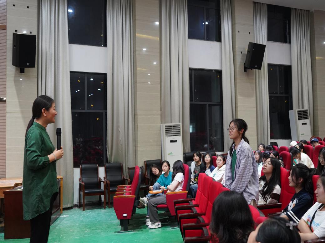 随后,王老师结合自己深耕家庭教育领域的亲身经历给大家分享如何实现专业理论到实际运用的跨越。她列出了几个场景让大家思考,比如上课有孩子走神该如何解决、家长求助孩子挑食又怎么应对。同学们主动互动交流,积极回答问题。王老师运用理论及实践知识向大家答疑解惑,同学们获益匪浅。