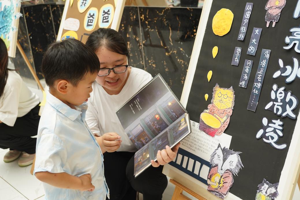 在绘本推荐展板的互动中,学前教育专业的各位同学们在专业课老师何中锋的悉心指导下,通过十四组展板进行了绘本推荐互动,引导亲子阅读和观看绘本。家长们踊跃参加、热烈响应,对亲子关系问题也提出了自己的疑惑,同学们也都一一进行了详细耐心的解答。