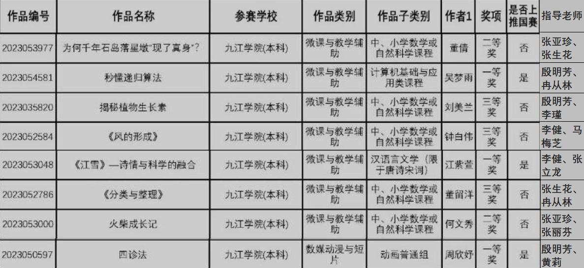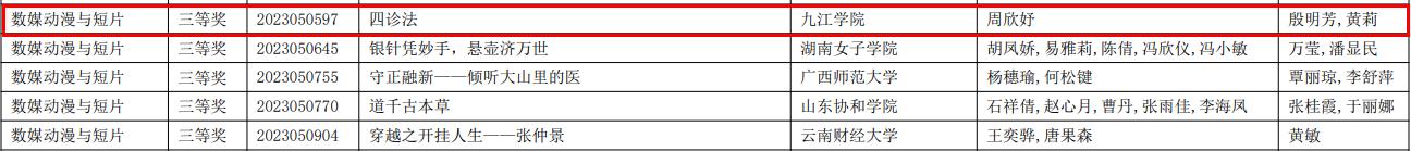 9月1日,2023年(第16届)中国老员工计算机设计大赛结果出炉,公司员工作品《四诊法》(A2011班周欣妤,指导教师殷明芳、黄莉老师)和《<江雪>——诗情与科学的融合》(A2011班江紫萱、汪灶文、刘萱,指导教师李健、张立龙)分别荣获国家三等奖。