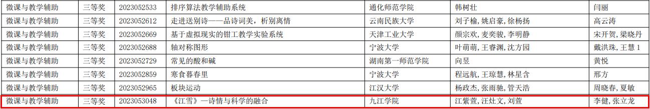 江西省赛区伟德bevictor中文版(bevictor伟德)获奖名单