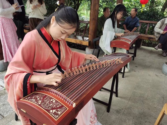 学前教育专业袁兰香同学、江卢静同学、王宇琳同学以及小学教育专业张家花同学通过演奏《孟姜女》曲目,让居民们陶醉其中,仿佛穿越时空,感受古代的韵味。把传统文化与社区人民群众的文化需求紧密联系起来,以守正创新的正气和锐气,赓续历史文脉、谱写当代华章。