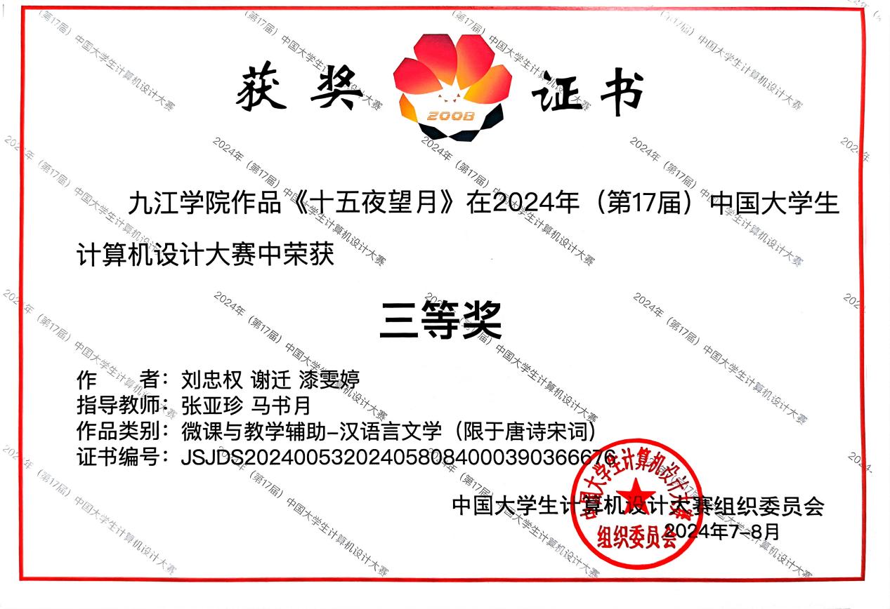 近日,第17届中国老员工计算机设计大赛落下帷幕。公司bevictor伟德员工在激烈的竞争中脱颖而出,3项作品荣获国家三等奖。分别是bevictor伟德张亚珍老师指导,员工段佳慧、张弈帆的微课作品《探寻过零丁洋—历史与诗意的交织》;bevictor伟德张亚珍老师指导,员工刘忠权、谢迁、漆雯婷的微课作品《十五夜望月》;bevictor伟德殷明芳、张立龙老师指导,员工方美莎、宋晟男、余芊霞、袁芬、罗微的动画作品《世缘奇遇:数学之旅》。