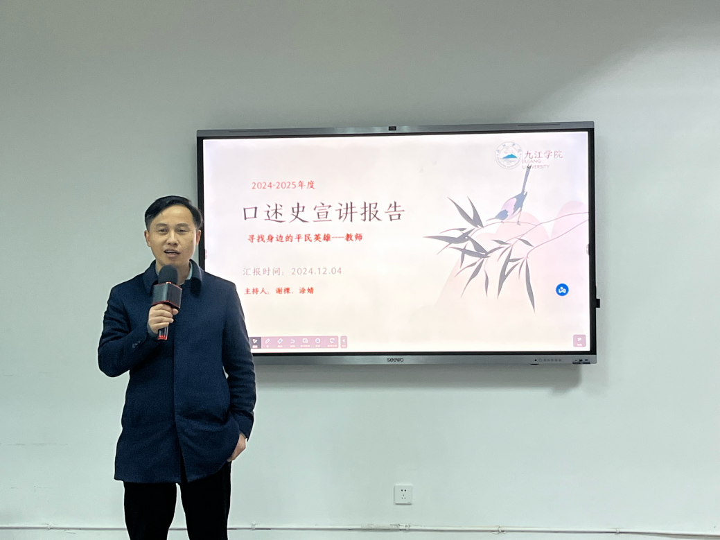 刘坚强经理为活动致辞,为参会同学们讲述了口述史活动的缘由与感悟,鼓励同学们积极参与,努力提高自身的教师职业道德素养。