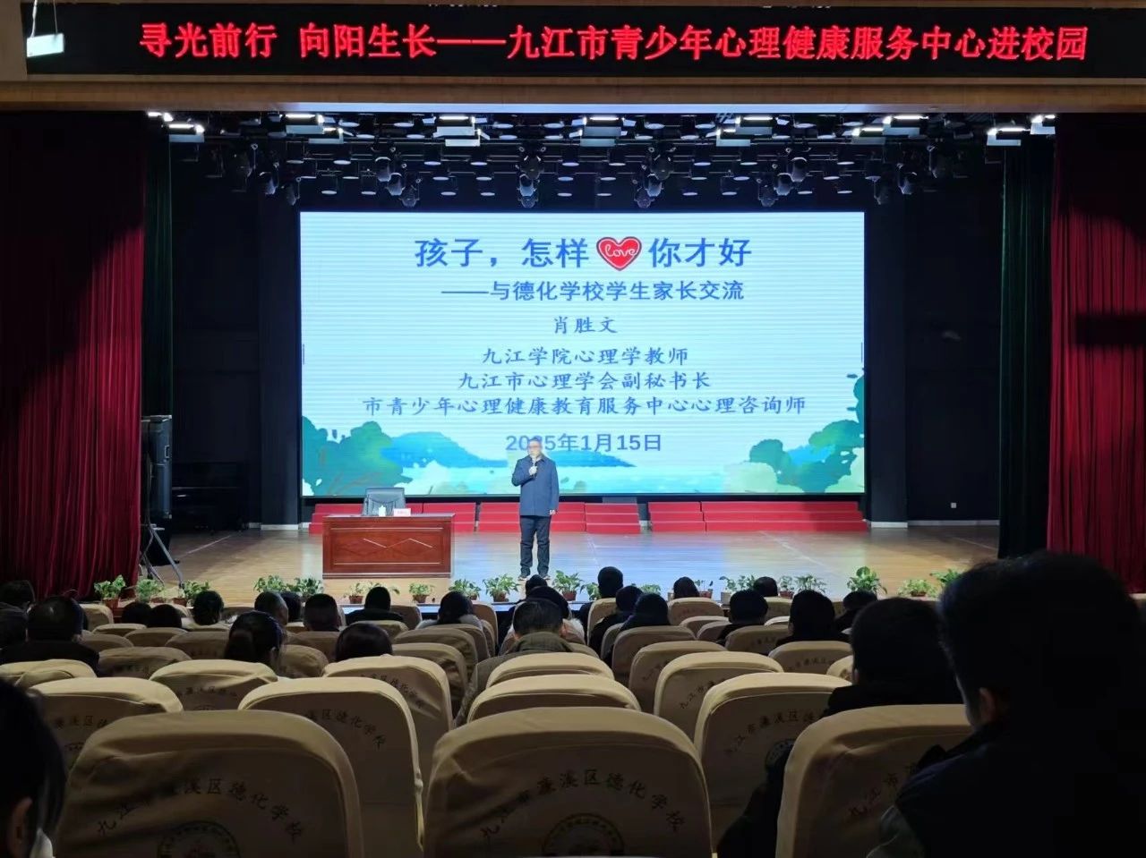 为进一步强化青少年心理健康教育,普及青少年心理健康知识,引导社会各界人士更加关注青少年心理健康,不断提升我市青少年心理健康水平。1月15日,九江市青少年心理健康服务中心走进德化公司开展“寻光前行 向阳成长”心理健康主题交流活动,德化公司400余名家长代表和教师参加。