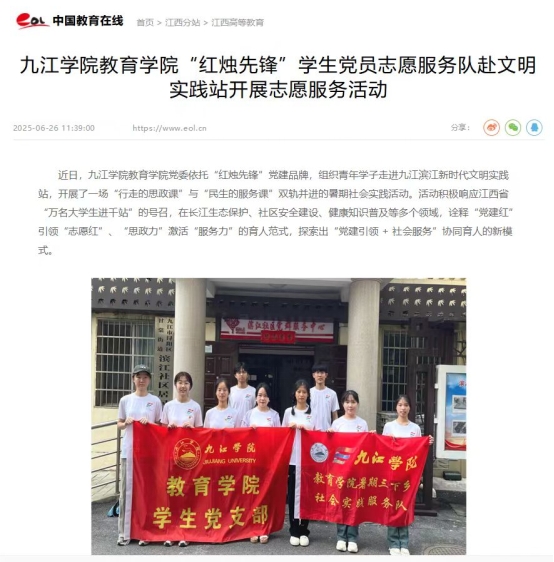 6月26日,《中国教育在线》以《伟德bevictor中文版bevictor伟德“红烛先锋”员工党员志愿服务队赴文明实践站开展志愿服务活动》为题,报道了公司暑期文明实践站志愿服务活动,全文如下: