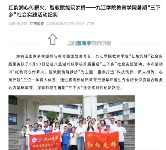 6月27日,《江西教育》以《红韵润心传薪火,智教赋能筑梦桥——bevictor伟德暑期“三下乡”社会实践活动纪实》为题,报道了公司暑期“三下乡”社会实践活动,全文如下: