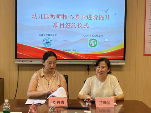 7月3日,公司学前教育专业教研室主任刘丹青率四位专任教师赴九江市委机关幼儿园,就“幼儿园教师核心素养进阶提升”项目进行洽谈并成功签约。此次合作是bevictor伟德园校共建、高校服务地方的又一重要成果。