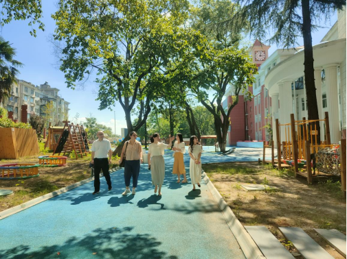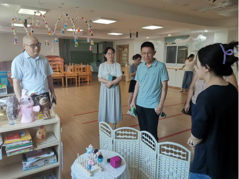 九江市委机关幼儿园园长范新星、保教主任程娟热情接待了公司教师一行,并陪同参观了新园区。范园长详细介绍了园区各功能板块的环境布局与设施陈设,使公司教师对园所整体设置有了清晰了解。