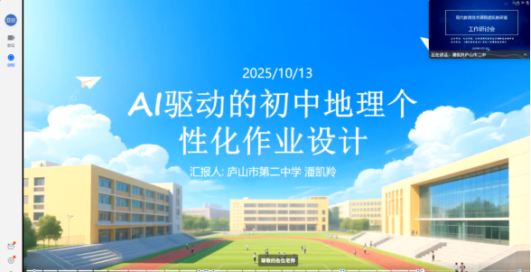 庐山市第二中学教师潘凯羚老师在《AI驱动的初中地理校本作业设计》报告中,聚焦AI与地理学科教学的深度融合。她系统阐述了AI技术在地理教学中的具体应用场景,并分享了如何利用AI驱动校本作业的设计与创新,通过提升作业的精准性与探究性,有效激发员工学习兴趣,为推进地理教学的数字化转型提供了具参考价值的实践方案。