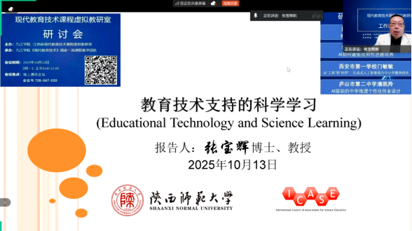 10月13日,公司省级虚拟教研室“现代教育技术课程虚拟教研室”第三次教学研讨会通过腾讯会议平台成功举办。会议特邀了陕西师范大学教育学部张宝辉教授(博士生导师)、华中师范大学人工智能教育学部张二奇博士、西安市曲江第一公司门敏敏老师和庐山市第二中学潘凯羚老师四位专家,围绕“AI赋能的教学新范式与新路径”展开深度交流与研讨。