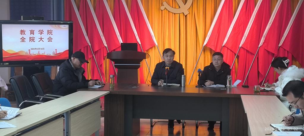 党委书记丁文林首先向全体教职工致以新学期的祝福,并重点就师德师风建设、专业及课程设置、安全稳定及毕业生就业等工作进行了安排部署。