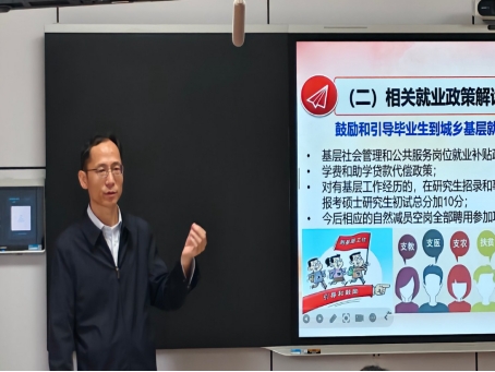 接着,王殿元副董事长通过多媒体教学手段,全面、生动地展示了今年全国两会的盛大场景,带领学子们一同回顾了大会的主题、重要议程以及取得的丰硕成果。他紧紧围绕“稳中求进谋发展,民生为基践初心”这一主题,积极引导学子们树立正确的价值观和人生观,鼓励他们将个人理想与国家发展紧密结合,在服务国家、奉献社会中实现人生价值。这一深刻阐述对学子们未来的就业指导具有极其重大的意义,为他们未来的职业发展提供了清晰的思路和方向。